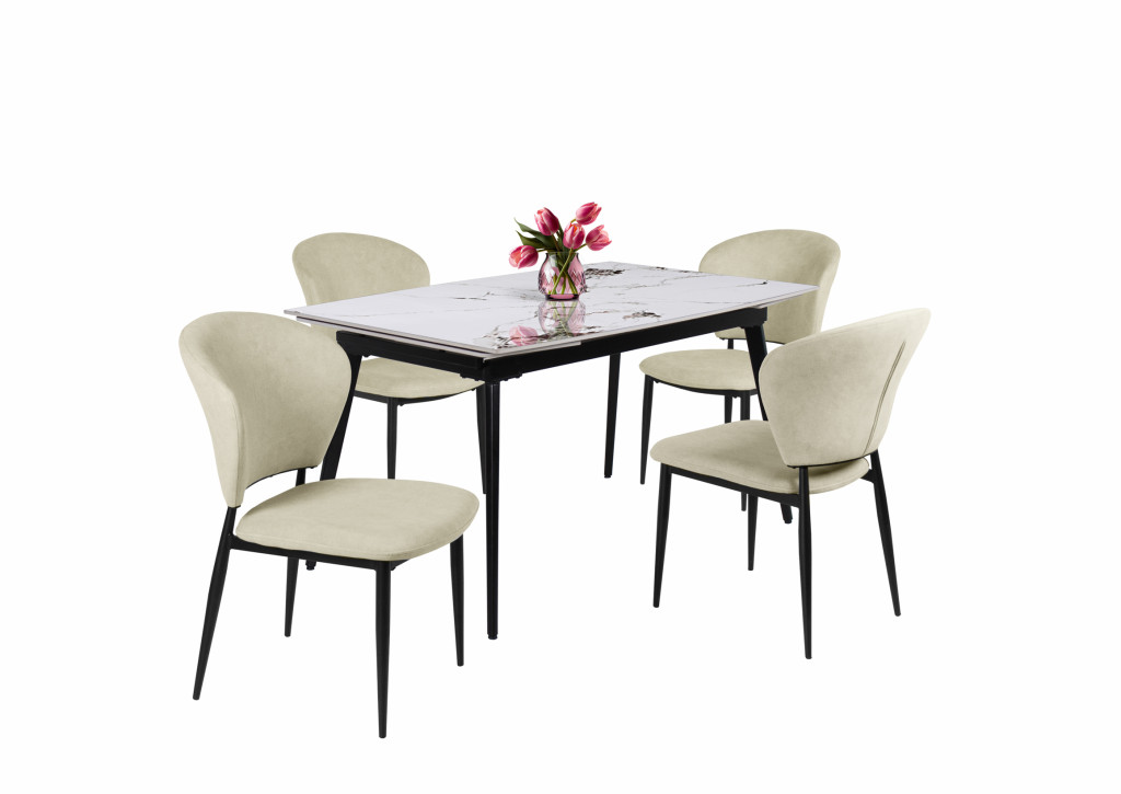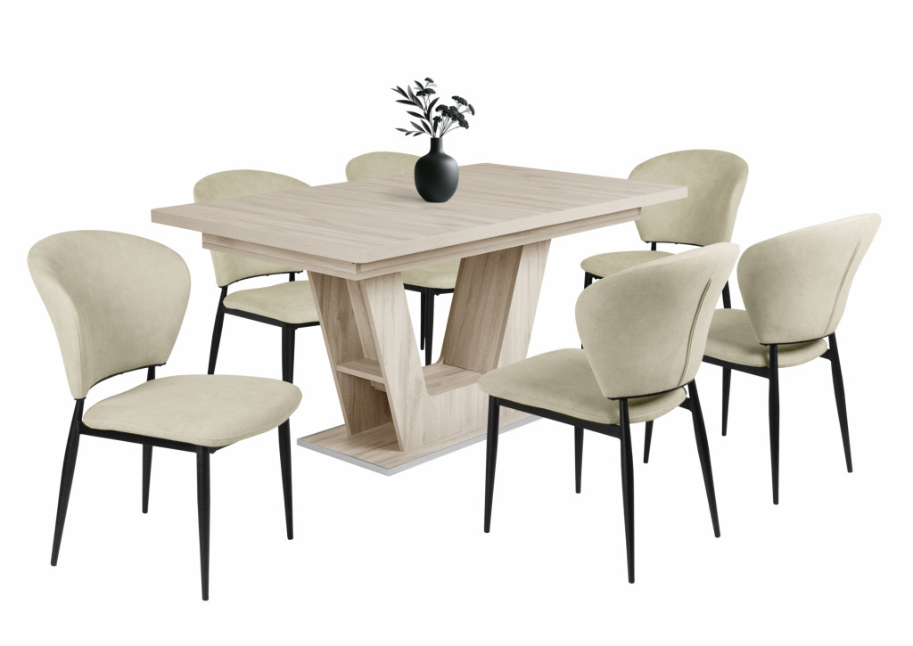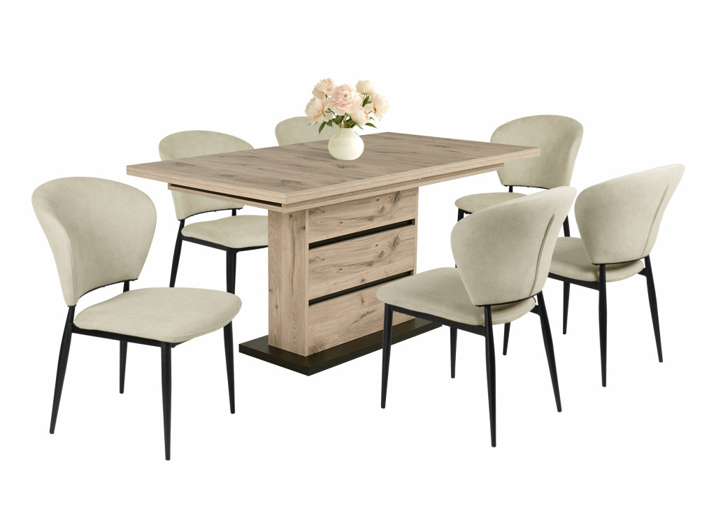 Szövet kárpit beige, barna vagy sötétkék színben és fekete porfestett fém lábak.