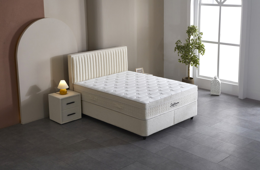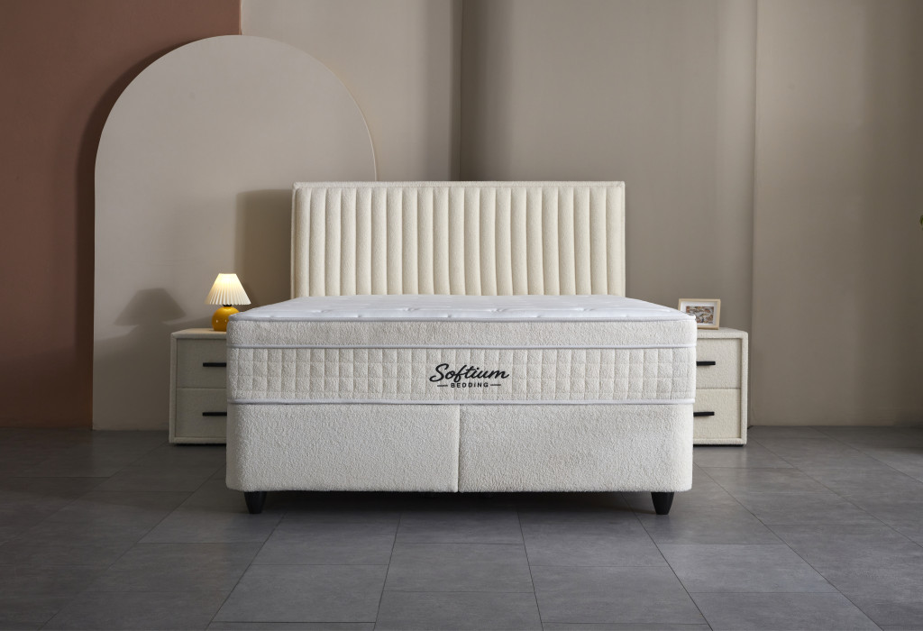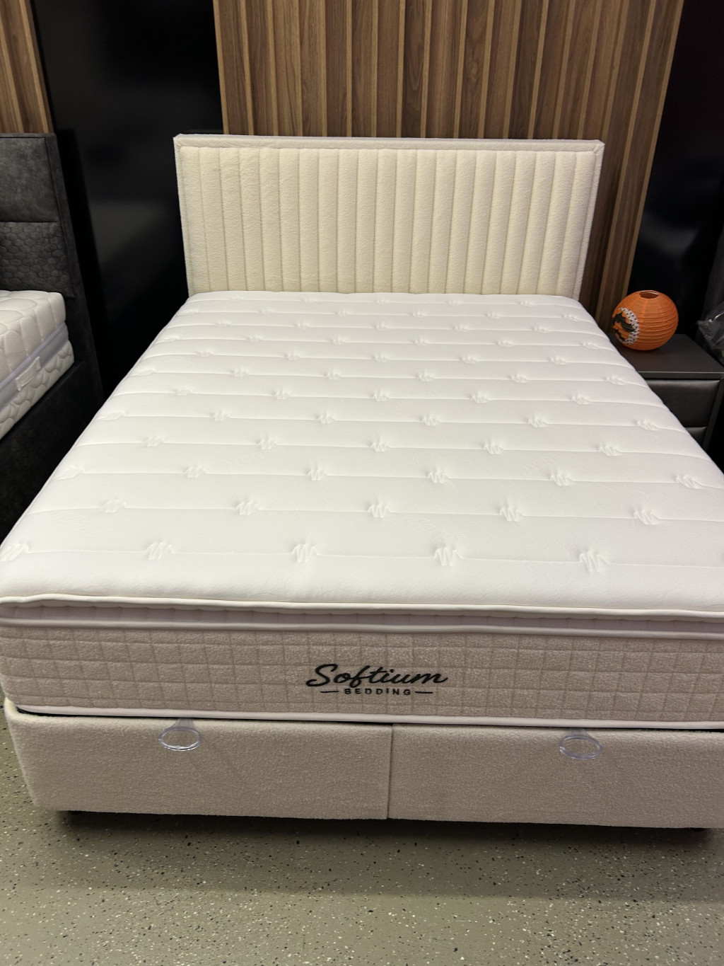 Prémium kategóriás SOFTIUM BEDDING, ágyneműtartós franciaágy táskarugós matraccal és elegánsan kidolgozott, fejvéggel.