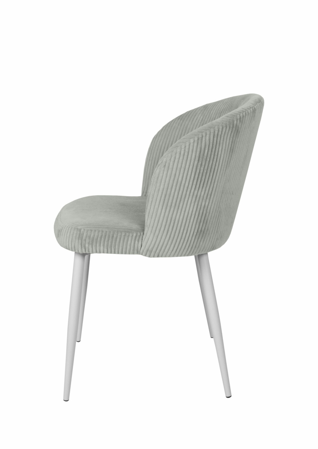 Az Olaf székünk 3 kellemes színben kapható, kordbársony szövettel. A beige, világosbarna és világosszürke szövetet fehér festett fém lábak teszik még elegánsabbá.