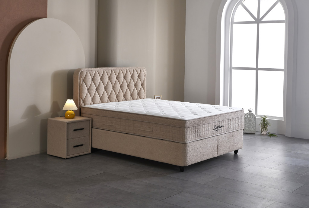 Prémium kategóriás SOFTIUM BEDDING, ágyneműtartós franciaágy táskarugós matraccal és elegánsan kidolgozott, fejvéggel.