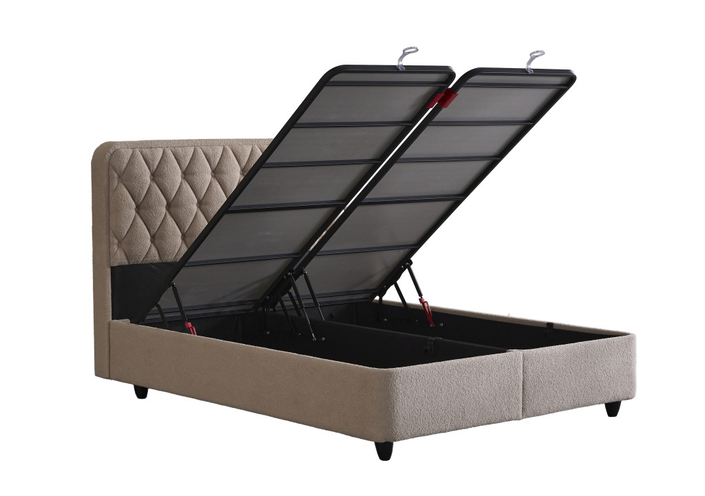 Az ágyneműtartó felnyitását erős gázrugós vasalat segíti, így könnyedén hozzáférhet a benne tárolt lepedőkhöz, paplanokhoz és párnákhoz. A franciaágy megjelenése a változatos színvilágú és különböző struktúrájú, egyedileg választható kárpitoknak köszönhetően tökéletesen igazítható az otthon stílusához.