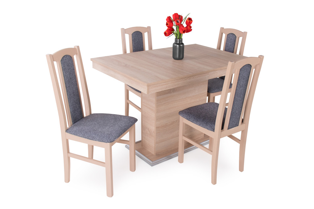 A Sophia Flóra étkezőganitúra négy személyes. Az ár tartalmazza a 4 db Sophia széket és a Flóra 120-as aaztalt. A székeket összeszervel szálítjuk, a Flóra asztal összeszerelést igényel.