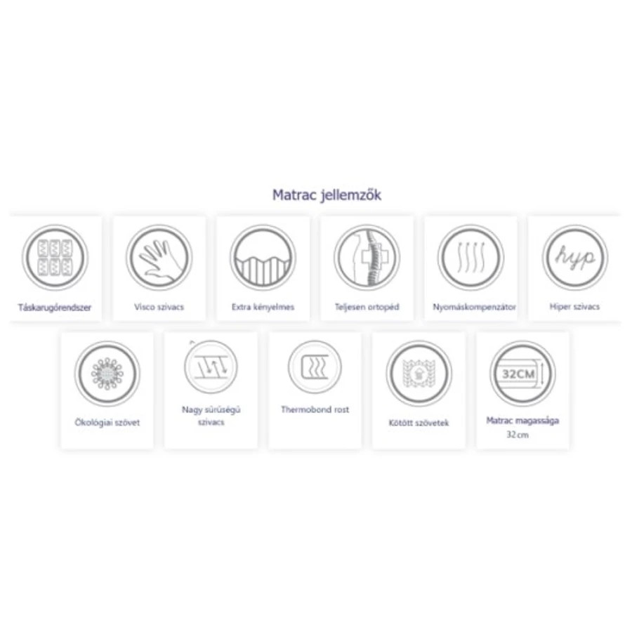 A test és a lélek sajátosságait tudatosan figyelembe vevő ergonomikus, ortopédikus, gerinckimélő kialakítású matrac. Minden olyan tulajdonsággal rendelkezik, amely a gyógyhatású alváshoz szükséges. A matrac kialakítása minimálisra csökkenti a vállra és a csípőre gyakorolt ​​nyomást, így biztosítva a pihentető alvás feltételeit. Nagy sűrűségű nyomáskiegyenlítő, hőszigetelő matracmag.