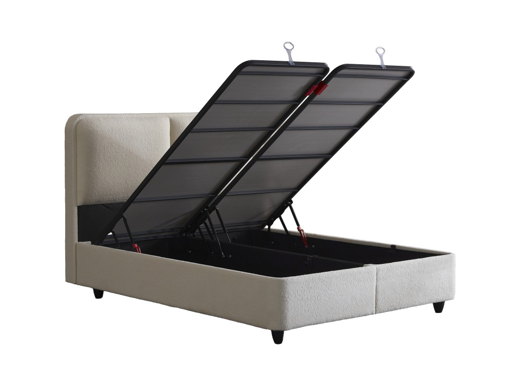 Az ágyneműtartó felnyitását erős gázrugós vasalat segíti, így könnyedén hozzáférhet a benne tárolt lepedőkhöz, paplanokhoz és párnákhoz. A franciaágy megjelenése a változatos színvilágú és különböző struktúrájú, egyedileg választható kárpitoknak köszönhetően tökéletesen igazítható az otthon stílusához.