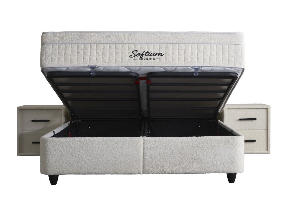 Prémium kategóriás SOFTIUM BEDDING, ágyneműtartós franciaágy táskarugós matraccal és elegánsan kidolgozott, fejvéggel.