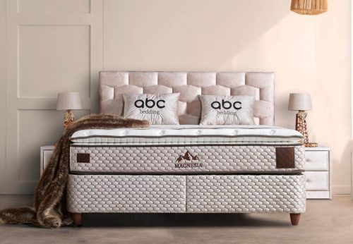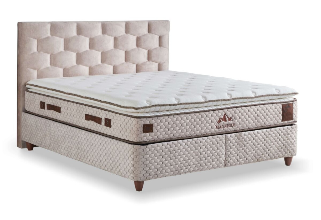 A Magnesia franciaágy prémium kategóriás alvóhely, amely egyszerre képviseli a funkcionalitást, a luxust és a kényelmet. A halvány bézs színű kárpitozás, a letűzött, hatszögmintás fejvég és a puhán párnázott matracfelület harmonikus egységet alkotnak. Az ágyhoz tartozó táskarugós matrac hypersoft habborítással és ökológiai szövet huzattal készül, amely nemcsak kényelmes, hanem egészségtudatos választás is.